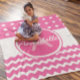 Pink White Chevron Monogram Personalised Fleece Blanket