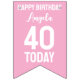 personalized 40th birthday bunting for her in pink and white. This 40th birthday banner is the perfect party banner for her 40th birthday party. you can customize the name, age and photo for a custom bunting.