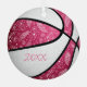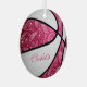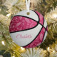 This cute basketball ornament features the realistic image of a basketball that has alternating pink and white recolored panels with delicate doodle flowers, feathers and paislies patterned on the basketball's pink panels - personalise the athlete's name on the front, commemorative year on the back - by katz_d_zynes