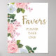 Beautiful and elegant pink and white springtime floral / roses and green leaves botanical watercolor baby shower "Favours, please take one" poster. Perfect for your springtime or summer baby girl outdoor shower.