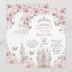 Pink White Floral Princess Castle Quinceañera XV Invitation