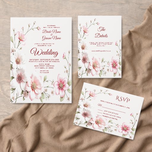 Pink White Floral Wedding Menu