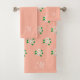 Pink White Flower Pattern & Monogram on Coral Pink Towel Set. Ideal for her.