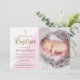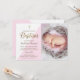 Pink White Gold Baptism baby girl photo Invitation