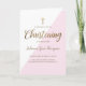 Pink White Gold Cross Christening baby Girl photo Invitation
