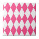 Geometric Pink and White Colour Harlequin Diamond Shapes Pattern Design