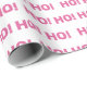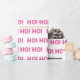 This wrapping paper features a pattern of 'Ho Ho Ho' in pink on white background.