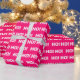 Pattern of 'Ho Ho Ho' in white on pink background.