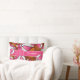 This cool lumbar pillow for a basketball player features varied size basketballs with pink and white panels turned every which way and prominent jersey number overlying a chunky, full length pink colour strip, upon which you can also customise the athlete's name in white - reverse side of pillow features a larger version of the basketballs pattern - by katz_d_zynes