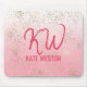 Pink White Ombre Speckled Gold Flakes Monogram Mouse Pad