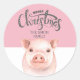Pink White Pig Merry Christmas Family Name Classic Round Sticker