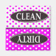 Magnet to place on the front of your dishwasher to help remember if dishes are clean or dirty. Featuring pink and white polka dots!