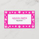 Pink & White Polka Dots Paw Prints Dog Groomer Business Card features a pink front with white polka dots and paw print design and fully customizable text.