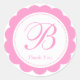 Pink White Scalloped Circle Monogram Thank You Classic Round Sticker