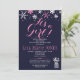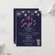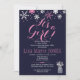 Chic elegant it's a girl baby shower party invitation template with magenta pink and white snowflakes border and a bunch or baby breath flowers in mason jar on dark midnight blue navy background. Fill in your information in the spots, You can choose to customise it further changing fonts and colours of lettering. ---- The invitation is suitable for stylish rustic country /winter Christmas baby shower parties or bbq. --- If you need assistance, please contact me!