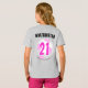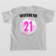 This fun gift idea for the kid who loves or plays soccer featuring a pocket area and back design with a pink and white soccer ball, name, and number. Personalise the text for the front pocket area and back or remove any of the text.
