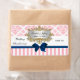 Pink White Stripe Damask Navy Blu Party Wine Label