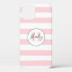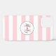 Stylish and trendy Pink and white stripes with Black initials monogrammed phone case