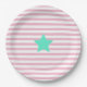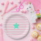 NewParkLane - Add a plash of colour to your party with these fun Paper Plates, with an abstract pattern of hot pink and white striped design, and a teal star.