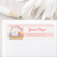 Pink & White Stripes Easter Bunny In A Basket & Colourful Eggs Happy Easter Label. Customise To Your Liking.