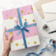 Pink White Stripes Gold Polka Dots Wrapping Paper