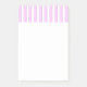 A pattern of simple pink and white stripes along the top of a sticky note.