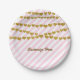 Pink & White Stripes with Gold Hearts Party Paper Plate