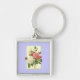 Pink White Vintage Botanical Roses Key Ring