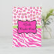 Celebrate with a Girls Night Out with this colourful hot pink invitation. The design features fuchsia hot pink and white zebra stripes and leopard or cheetah skins combined for a modern design. A hot pink emblem outlined in black sits on a lime green bar and creates a personalisation area for a name and "Girl's Night Out" words that can be customised to other words. The back of the invitation includes fields for all of your information for your event. You can easily change and delete fields as needed. Colours are white, fuchsia pink, black and lime green. Wild animal skins for graphic design is one of the hottest art and design trends, and is extremely popular from fashion to home decor. This sophisticated zebra and leopard print collection is one of several colour combinations available for your choice of invitations. Fully customisable to personalise.