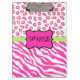 Pink White Zebra Leopard Skin Monogram Clipboard