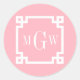 Pink Wht Greek Key #2 Framed 3 Init Monogram Classic Round Sticker