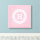 Pink Wht Greek Key Rnd Frame Initial Monogram Canvas Print