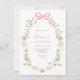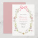 Birthday invitation featuring a frame of watercolor wildflowers and butterflies adorn with a pretty pink bow. Customise with your information for the bride to be. Click "click to customise further" to change the font style, size or colour.