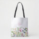 Pink Wildflower Floral Monogram Tote Bag