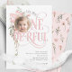 Introducing the 'Blush Pink Wildflower Little Miss Onederful' photo invitation, a perfect beginning to your baby girl's first birthday celebration. This A7-sized invitation blends shabby chic charm with elegant modern calligraphy, featuring a personalised touch with your little one's photo and birthday details. Adorned with delicate watercolor pink wildflowers, it captures the essence of a whimsical garden, bringing a sense of natural beauty to this special announcement. Each invite comes with a matching envelope, ensuring a beautiful presentation right from the mailbox to your guests' hands.
