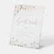 Pink Wildflower script rustic Wedding Guest Book Pedestal Sign