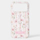 Make a statement with this iphone 17 pro max phone case that is so elegant and pretty! It's modern yet trendy with a delicate blush pink wildflower floral garden pattern with wispy botanical greenery on a soft blush pink striped background and your name in a CAP font in white inside a beautiful pink box that allows your name to pop. It will go with everything and look fabulous on your phone!