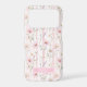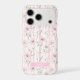 Make a statement with this iphone 17 pro phone case that is so elegant and pretty! It's modern yet trendy with a delicate blush pink wildflower floral garden pattern with wispy botanical greenery on a soft blush pink striped background and your name in a CAP font in white inside a beautiful pink box that allows your name to pop. It will go with everything and look fabulous on your phone!