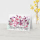 A pretty birthday card featuring a summer meadow full of pink wildflowers painted in watercolor.