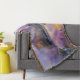 A quality printed throw has its advantages. This is a much finer weave throw than its loopier cousins, and though lighter, it is worth the investment for custom room accessorizing. The back is much prettier than the typical brown, and the fringe on the long sides very vivid, the selvage nicely done. Before photographing, I washed the throw in cold water, delicate, with a thicker woven throw the same size. On tumble dry low, this throw was dry in half the time as the other. This is a very practical quality if you use throws for furniture covers or to wrap up in frequently. The sleekness of the fabric makes it a great layer for accenting or protecting without the feeling of sitting on too much stuff. Perfect for napping or when you feel a light chill coming on. The color printing is beautiful and on this fabric, matched the design and color of my Photoshop image. This is an advantage for blending room fabrics and colors. The fringe on the short sides prints the colors from the design image and therefore varies from the side fringe. I streaked a white fractal line through the plaid pattern to give the illusion of weaving. This printed as crisp as an illusory thread, and put some white in the short side fringe, showing another advantage of print vs loomed- for artistic purposes, line lines, detail, and color integrity can be planned and preserved. My loomed throws have color limitations and more of a needlepoint texture. Print throws reproduce an exact image. The throw felt a little stiff straight out of the package, but this went away in the first delicate wash. Of course I searched the wash water for ink or bleeding and there was none.