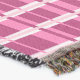 A quality printed throw has its advantages. This is a much finer weave throw than its loopier cousins, and though lighter, it is worth the investment for custom room accessorizing. The back is much prettier than the typical brown, and the fringe on the long sides very vivid, the selvage nicely done. Before photographing, I washed the throw in cold water, delicate, with a thicker woven throw the same size. On tumble dry low, this throw was dry in half the time as the other. This is a very practical quality if you use throws for furniture covers or to wrap up in frequently. The sleekness of the fabric makes it a great layer for accenting or protecting without the feeling of sitting on too much stuff. Perfect for napping or when you feel a light chill coming on. The color printing is beautiful and on this fabric, matched the design and color of my Photoshop image. This is an advantage for blending room fabrics and colors. The fringe on the short sides prints the colors from the design image and therefore varies from the side fringe. I streaked a white fractal line through the plaid pattern to give the illusion of weaving. This printed as crisp as an illusory thread, and put some white in the short side fringe, showing another advantage of print vs loomed- for artistic purposes, line lines, detail, and color integrity can be planned and preserved. My loomed throws have color limitations and more of a needlepoint texture. Print throws reproduce an exact image. The throw felt a little stiff straight out of the package, but this went away in the first delicate wash. Of course I searched the wash water for ink or bleeding and there was none.