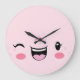 Cute and fun Pink Winking Kawaii Face Wall Clock. Great for kids and adults.
