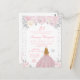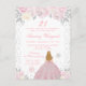 This elegant and glamourous winter birthday invitation features a beautiful princess with blonde hair and fair skin in a pink ball gown. The text combines handwritten script and modern sans serif fonts for a classy and sophisticated look. The floral arrangements, snowflakes and silver confetti create the perfect blend of rustic and chic.
