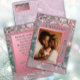 The reverse side maintains the winter imagery and pink-hued borders, including a pre-written message that can be personalised with your own message if desired. Options for personalisation include using just the family name or incorporating the names of individuals in the photo, along with the corresponding year of sending.