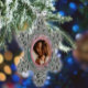 This Christmas, consider spreading holiday cheer with a unique gift idea—a snowflake-shaped pewter ornament. This ornament is designed to hold a cherished photo, making it a perfect way to commemorate special moments such as the arrival of a new baby, an adoption, a marriage, or the addition of a new pet. It features a winter scenery background and includes space for the year, all framed in modern pink-toned borders, adding a stylish touch to your holiday decor. Sharing this ornament with family and friends can make the season even more memorable for many years to come.
