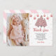 Pink Winter Christmas Tree Birthday Photo Thank You Card
