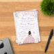 This elegant and glamourous winter sweet sixteen birthday invitation features a beautiful princess with brown hair and dark skin in a pink ball gown. The text combines handwritten script and modern sans serif fonts for a classy and sophisticated look. The floral arrangements, snowflakes and silver confetti create the perfect blend of rustic and chic.