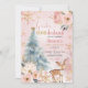 Pink Winter Onderland Floral Forest Deer Birthday Invitation