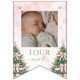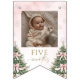 Celebrate your little one’s milestone with this Pink Winter Onederland 1st Birthday Monthly Photo Bunting Flags featuring snowflakes and festive Christmas trees with pink bows. Easily personalize all text and photos for a magical winter birthday celebration.
