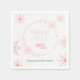 A winter wonderland 1st birthday napkin for a year old birthday with Rose gold pink colour and white background and snowflakes and a personalised message. The funny text says "Thank you snow much". Perfect for 1st birthday invitation.